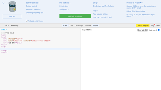 | Название / Заголовок | JS Bin - Collaborative JavaScript Debugging |