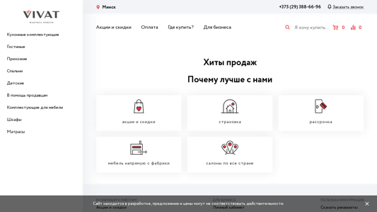| AI-анализ | --- This website is an e-commerce platform for the furniture manufacturer VIVAT, based in Moscow, Russia. The title and description suggest it is a site for buying furniture in bulk directly from the factory. The keywords indicate that the website sells furniture from the manufacturer VIVAT, and that it is possible to buy furniture in bulk. The top words suggest various types of furniture available, including kitchen components, cabinets, and bedroom furniture. The site offers recommendations for purchases, and promises quick delivery. Visitors can become dealers by contacting the phone number given in the description. The site appears to sell various types of furniture, including modern, classical, and Scandinavian styles, as well as modular systems and ready-made rooms. There are sections for kitchen components, bedroom furniture, and accessories, including shelves, plinths, and fittings for furniture. The site also offers a range of mattresses and |