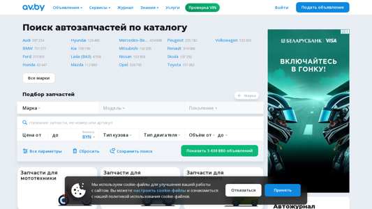 | AI-анализ | The website AV.BY is an online marketplace for buying and selling used auto parts in Belarus. The platform allows users to search for parts using a catalog and by name. The website uses cookie-files for site improvement and offers a policy for their usage. The main categories of items listed on the site include automobiles, new and used auto parts, and various services related to automobile maintenance and sales. Users can find parts for a wide range of car brands, including Audi, BMW, Ford, Honda, Hyundai, Kia, Lada, Mazda, Mercedes-Benz, Mitsubishi, Nissan, Opel, Peugeot, Renault, Skoda, Toyota, Volkswagen, and others. The website also offers a variety of filters and search options to help users find the specific parts they need. The domain for this website is parts.av.by |