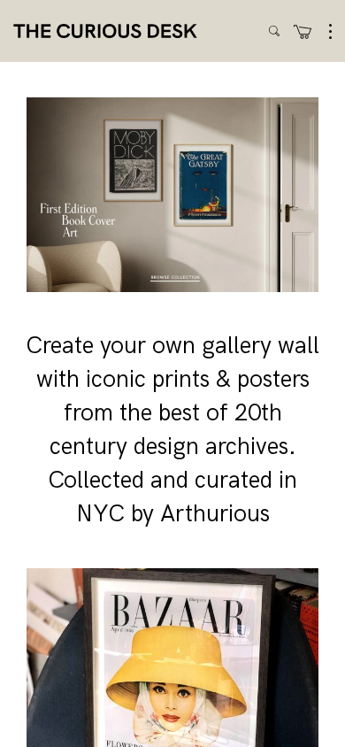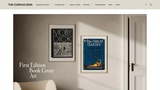| AI-анализ | --- This website, titled "Home - The Curious Desk," offers a collection of vintage covers, prints, posters, and gifts for a curious mind. The selection is curated by NYC designer and photographer Arthurious. The website includes categories such as magazine prints, vintage ads, furniture brands, and cigarette ads. Within these categories, various options are available, such as prints from popular magazines like After Dark Architectural Forum, Dance Magazine, and Rolling Stone, as well as vintage ads from Volkswagen and Cigarette brands. The website also offers a range of prices from $18 to $65. Users can create their own gallery wall using the offered prints and posters. |