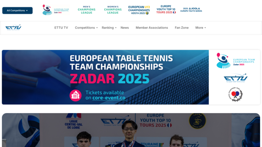 | AI-анализ | language: en This website is the official European Table Tennis Union (ETTU) platform, providing information on all European table tennis competitions, rankings, news, and events. The site features a comprehensive competition calendar, results archive, and online entry system. It also offers a current and previous ranking, ranking documents, and live ticker for the latest news. The ETTU deals with all matters relating to table tennis at a European level, including hosting the European Team Championships, announcing the opening of coach education courses, and publishing the round of 16 draw for the ETTU Champions League. Recent news includes Nathan LAM winning the Under 19 Boys' title in Tours, Francesco TREVISAN winning the Under 15 Boys' title, and Nina GUO ZHENG leading the French triumph in the Under 19 Girls' title. |