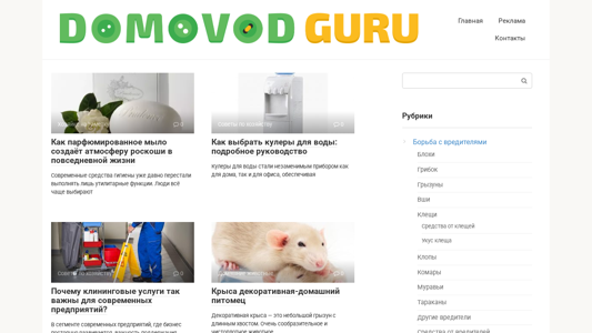 | AI-анализ | --- This website, titled "Domovod.guru," provides useful tips and hacks for household management. Key topics cover gardening, home maintenance, and cleaning services, among others. The site also includes sections on pets and interior design. Users can find advice on choosing cleaning products, maintaining decorative krysa pets, and growing lilies. Additionally, the site discusses the importance of professional cleaning services for modern businesses and offers tips on choosing and caring for evergreen shrubs like mozhgevelnik. The site also provides information on growing tomatoes and battling common household pests. The site is organized with clear labels for easy navigation and includes pagination for longer articles. |