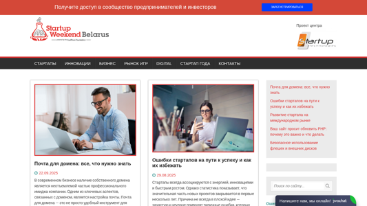 | AI-анализ | language: ru The web project Startup Weekend Belarus is dedicated to startups and investments. It provides access to a community of entrepreneurs and investors and offers articles on various topics related to startups, such as domain registration and email hosting, understanding market needs, scaling a startup on the international market, and avoiding common startup mistakes. The website includes sections on innovations, business, and digital startups, as well as information on the annual Digital Startup of the Year contest and contacts for email inquiries. The project also emphasizes the importance of having a professional email address with a company domain for corporate branding purposes. The articles are dated from September 2025 and encourage readers to comment and share their thoughts. |