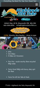 | AI-анализ | The web project "Highlands Hot Tubs" offers various products and services for enhancing year-round fun at home. The main focus is on hot tubs and spas, with financing options and Innova Spas available. The contact information includes a phone number, email address, and physical address in Maynooth, ON, Canada. Additional offerings include ATVs, dirt bikes, e-bikes & e-scooters, fire pits made from recycled BBQ tanks, a party-sized BBQ, and parts for all hot tubs and pools. The domain is highlandshottubs.ca. |