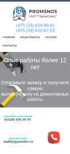 | AI-анализ | This online resource, titled "PROMONTAGE," is a website dedicated to offering services related to the disassembly and assembly of metal structures and equipment, as well as rigging work in Minsk, Belarus. The site provides a catalog of their services, which includes the dismantling of concrete and foundations, the mounting and dismounting of heavy machinery and equipment, and the rental of lifting equipment and rigging tools. The company has over 12 years of experience in these fields. Users can request a quote for these services on the site, and the company offers transportation of equipment up to 50 tons using their own vehicles. The website also features sections on the rental of cranes, lifting platforms, and rigging equipment. |