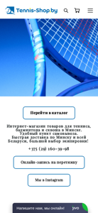 | AI-анализ | The web project Tennis-shop.by is an online tennis shop based in Minsk, Belarus, offering a wide selection of tennis rackets, shoes, strings, and court equipment with fast delivery in Minsk and Belarus. Customers are required to place an order and coordinate the pick-up time before visiting the self-pickup point. The shop also provides an online registration for racket stringing and operates on Instagram, email, and several messaging apps. The business entity is registered as OOO "Roketsport" with the UNP number 193886787 and has a physical address in Minsk. The shop's operating hours for self-pickup and online sales are from 12:00 to 18:00 on weekdays and from 10:00 to 19:00 on weekends. |