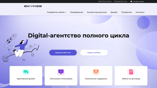 | AI-анализ | This website is a Belarusian digital agency based in Minsk, offering full-cycle website development services. With over 130 completed projects, the company provides creation of websites of any complexity, landing pages, catalogs, internet shops, and sites on installment. Additionally, they offer website promotion through contextual advertising, design services, and technical support under contract. The company, "СкайВеб," has been in business for 12 years, focusing on creating modern, well-structured websites with a wide range of functions. Clients can benefit from a comprehensive approach to website development, saving time and money by accessing all necessary services from one provider. Beyond website creation and promotion, the company also offers technical site support and internet advertising. The importance of post-creation site promotion is emphasized, as achieving high search engine positions is crucial in today's competitive online business environment. From the |