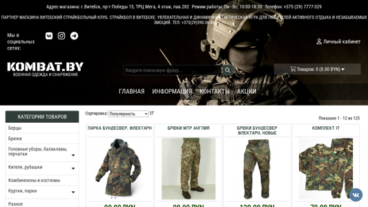 | AI-анализ | --- This website is an online military clothing and equipment store named KOMBAT.BY. It offers a wide range of products at attractive prices, ensuring good quality and fast delivery, while providing various payment methods. The store is located in Vitsebsk, Belarus, and is a partner of the Vitsebsk Strikeball Club. It sells a variety of items, including uniforms, boots, helmets, gloves, belts, backpacks, and tactical clothing. Products are available from reputable NATO stockpiles in Germany, Italy, and England. The store features categories for camouflage uniforms, tactical clothing, military boots, and accessories. Popular items include the Bundeswehr parka, MTP trousers from England, and Varan bercy uniforms. The website is available at kombat.by. |