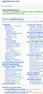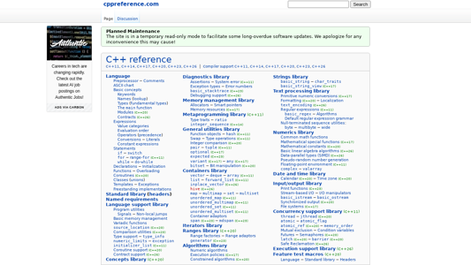 | AI-анализ | The portal cppreference.com is a comprehensive reference website for the C and C++ programming languages. The site provides detailed information on various aspects of the languages, including keywords, types, functions, expressions, statements, declarations, and standard library features. It also includes a search function and a discussion page for each topic. The site is currently undergoing planned maintenance and is in a temporary read-only mode to facilitate software updates. The domain is registered as .BY for Belarus. |