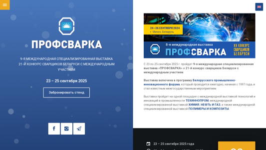 | AI-анализ | The portal Profsweld is a specialized exhibition for the sale of equipment and materials for welding and cutting, along with a competition for welders. The event, which is the 9th international exhibition and the 21st welder's competition in Belarus with international participation, takes place from September 23 to 25, 2025. Visitors can register electronically in advance to receive a free admission ticket, which can be printed and presented at the registration desk upon arrival. The exhibition features sections for the program, participants, new products, partners, and information on how to get there and contact details. The Profsweld exhibition includes a wide range of welding and cutting equipment, including inverters, generators, electrodes, and specialized clothing, as well as modern production and technology materials. The event includes a competition for welders, with rules and regulations available for review. |