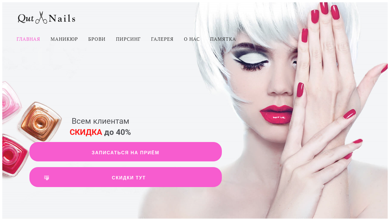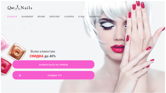 | AI-анализ | This online resource, titled "Qut Nails," is a website dedicated to providing professional manicure and pedicure services. Keywords associated with the site include "manicure," "pedicure," "master," and "salon." The site offers various services, including nail art and piercing, and boasts a large selection of over 600 nail polish colors. The site also includes a discount offer for new clients, allowing them to save up to 40% on their first visit. The site's description emphasizes the importance of taking care of one's nails and promises a high-quality experience with skilled professionals. The site includes customer reviews praising the accuracy, speed, and attentiveness of the staff, as well as the cleanliness of the salon. The site's top words include "very" and "beautiful," suggesting a focus on creating a ple |