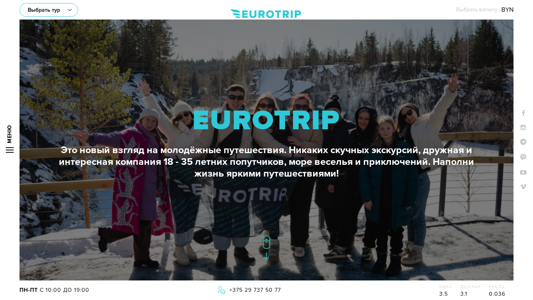 | AI-анализ | The web project Eurotrip is a youth travel agency based in Minsk, Belarus, with a decade-long successful track record. Unlike traditional travel agencies, Eurotrip offers unique youth tours throughout Europe and the CIS without the boring excursions. Each tour comes with a photographer to capture memories. The website offers various filtering options to select tours by destination, length, and price. Available destinations include various European and CIS countries, with options for beach vacations, corporate tours, and spa retreats. The website also includes a blog and a calendar of upcoming tours, as well as contact information and options to select currency and tour length. The top keywords used on the site include 'thank you', 'eurotrips', 'all', 'only', 'tours', and 'Europe'. |