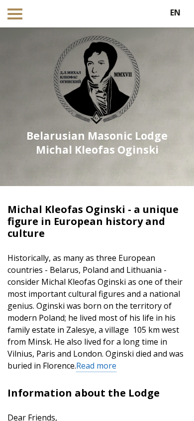 | SEO-описание | Website about Belarusian Freemasons from Minsk. Find out more about the Michal Kleofas Oginski Lodge, the masonic community in Minsk, their traditions and culture. |