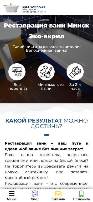 | SEO-описание | 🌿 Эко-реставрация ванн за 2-4 часа в Минске — Безопасно для детей! 👶 Гипоаллергенные материалы 🌱, без токсичных испарений ☁️. Сертифицированные мастера 👷♂️ |