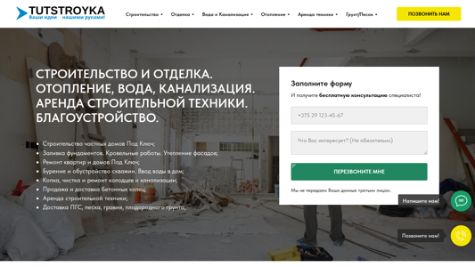 | AI-анализ | The web project "Tutstroika.by" offers construction, repair, and sanitation services in Rakovo and a radius of 30 kilometers. They specialize in foundation pouring, bricklaying, and home and apartment repairs. Their services include installation, maintenance, and rental of heating, water supply, and sewage systems. The website also mentions the availability of construction equipment and materials for purchase or rental, such as gravel, sand, and fertile soil, along with competitive prices and volume discounts. The contact number is provided. |