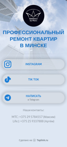| AI-анализ | This online resource, titled "artmaxby.taplink.ws," is a professional home repair service based in Minsk, Belarus. The website includes references to Instagram, TikTok, and Telegram for communication, with contact details provided for MTC (+375 29 5784557 for Maxim) and Life:) (+375 25 9337888 for Artem). The domain name is "artmax.by." The site uses the Taplink platform and includes the keywords "professional," "repair," "apartments," "Minsk," and "Instagram," among others. |