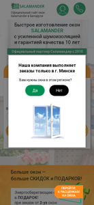 | AI-анализ | --- The website is for a window company named Salamander, operating in Minsk, Belarus. It offers PVC windows with a discount of 40% and a 10-year guarantee. The company only processes orders in Minsk. Visitors can request a call-back, find information about official Salamander partner in Belarus, and view a calculator to estimate window costs based on standard sizes. Additionally, the site offers various discounts and promotions for multiple window purchases. |