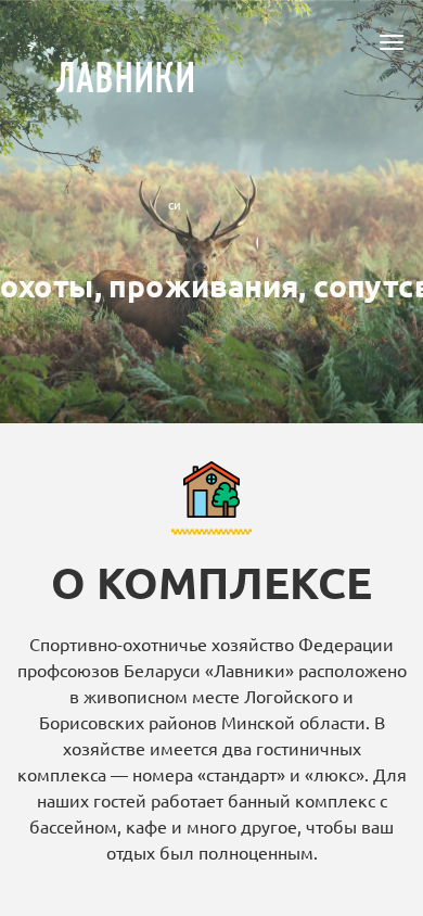 | Название / Заголовок | Спортивно-охотничье хозяйство Лавники — Охота и отдых |