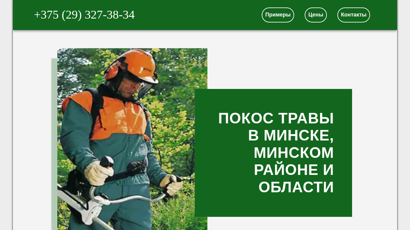 | SEO-описание | Покосим траву в Минске и области: качественно, недорого, быстро. Заключаем договоры на сезонное обслуживание, есть скидки. Звоните и заказывайте сейчас! >Тел. +375 (29) 327-38-34< |