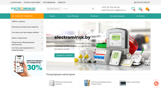 | AI-анализ | The portal electrominsk.by is a professional supplier of high-quality electrical mounting materials. The company offers a wide range of products including cables, wiring accessories, electrical systems, and armature for self-supporting insulated conduit (SIP). The catalog includes various types of cables such as PVC, PV1, PUGV, PV3, PVS, SHVV, VVG, VVGng-LS, FRLS, AVVG, AVBshV, PNSV, and acoustic cables. The website also provides electrical installation systems, connectors, switches, dimmers, and various electrical components. Users can browse through different categories and add items to their cart for purchase. The contact information for the company is available on the site, but no pricing or delivery details are provided. The portal appears to be targeted towards professionals in the |