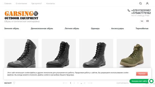 | AI-анализ | --- This website is an optoelectronic retailer specializing in tactical footwear from the manufacturer TM Garsing. The title is "Оптовая продажа тактической обуви. Ботинки с высоким берцем от TM Garsing| г. Минск," which translates to "Wholesale Sales of Tactical Boots. High Bercem Boots from TM Garsing| City of Minsk." The description is "Продажа тактической обуви - ботинки с высоким берцем от производителя TM Garsing," which means "Sale of tactical footwear - high bercem boots from the manufacturer TM Garsing." The keywords are "купить берцы оптом, берцы garsing, тактическая одежда g |