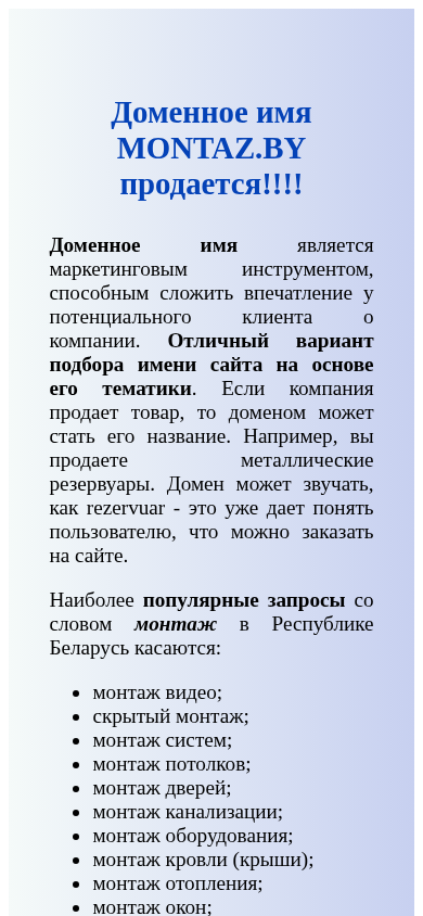 | SEO-лексика | монтаж доменное имя montaz может можно продается является маркетинговым инструментом способным сложить впечатление потенциального клиента компании отличный вариант подбора имени |