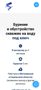 | AI-анализ | --- This website is for Company "БурМастер" based in Могилевская область, specifically in the city Быхов, offering drilling and installation of water wells in the Могилев region. The company provides the service under the key, with financing options up to six months and a five-year warranty. Users can contact the company via phone number +375 (29) 665-55-49 for consultations and to place orders, with availability from Monday to Sunday, 7:00-21:00. The website includes contact information, customer reviews, and pricing details. The company offers a full cycle of water well drilling and installation services, with a guarantee of quality work for five years. The company's advantages include over 12 years of experience, flexible financing, and minimal landscape disruption due to the use of a compact drilling rig. |