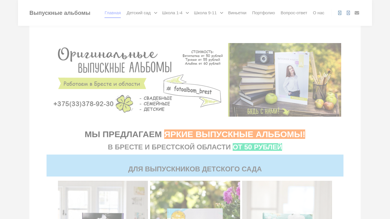 | AI-анализ | --- The portal fotoalbom.by offers various release albums in Brest and Brest region starting from 50 rubles. For preschool children, students of the first to fourth grades, and students of the ninth to eleventh grades. The offer includes high-quality printing using modern and professional equipment. A contract is concluded with detailed terms, deadlines, and service conditions. The photographers have extensive experience working with children and strive to find an approach to each one. The service has been in operation since 2016. For orders of 20 albums, an album or a vinette is given as a gift to the class. A 50% discount is given for orders of 15 albums. Permission from the education department is obtained if required, two months before the shoot. There are several types of albums: photo booklets, trunks, and albums (2- |