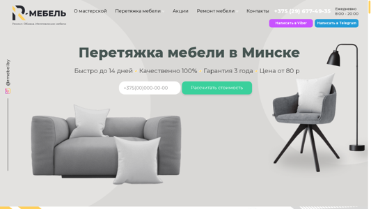 | AI-анализ | --- This website is dedicated to providing affordable upholstery services for furniture in Minsk, Belarus, under the name "Rmebel.by". The business offers various options for upholstery, such as changing or adding new fabric, and provides services for a wide range of furniture pieces including sofas, chairs, and kitchen furniture. Prices for their services are stated to be low, with a guarantee of 12 months. Customers can contact the business for inquiries or to schedule appointments through the provided phone number and messaging apps. Services offered include upholstery repair and remodeling, as well as the creation of new furniture. The website also mentions actions or promotions. The domain is rmebel.by. |
