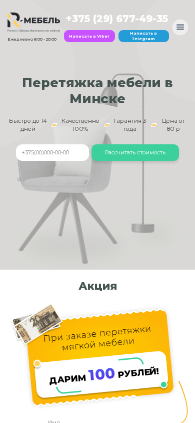 | SEO-описание | Недорогая перетяжка мебели мягкой в мастерской «Rmebel.by» - Цены на перетяжку мебели низкие - Обтянуть тканью, заменить обивку - Вывоз и доставка по Минску и обл Гарантия 12 м - Звоните! |