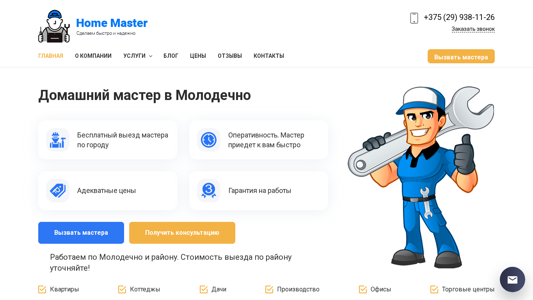 SEO-описание | Домашний мастер в Молодечно. +375 (29) 938-11-26 | Работаем без посредников. От 40 BYN за выезд. По Молодечно и району. |