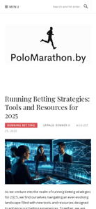 | AI-анализ | The website PoloMarathon.by is dedicated to running betting. It provides resources and strategies for individuals interested in this activity. The site includes articles on various topics related to running betting, such as safety tips, bonus reviews, and app reviews for the year 2025. The content is written by Gerald Renner II and covers different aspects of running betting, including tools and resources for enhancing the betting experience. The keywords associated with the website include "betting," "running," and "strategies." |