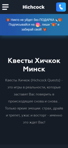 | AI-анализ | The website "Questies Hichcock Minsk" offers reality-based games that will make you believe in the unfolding events repeatedly. Emotional excitement: fear, thrill, and goosebumps - this is what awaits you! The website also provides gift certificates for quests as unique presents for birthdays or colleagues. Users can choose a quest theme and find various discounts and offers. The website also offers a space for organizing events, ensuring all activities take place under one roof and saving time and effort on guest transfers. The website features reviews, certificates, and a blog, with contacts listed for inquiries and bookings. The domain name is "questcity.by". |