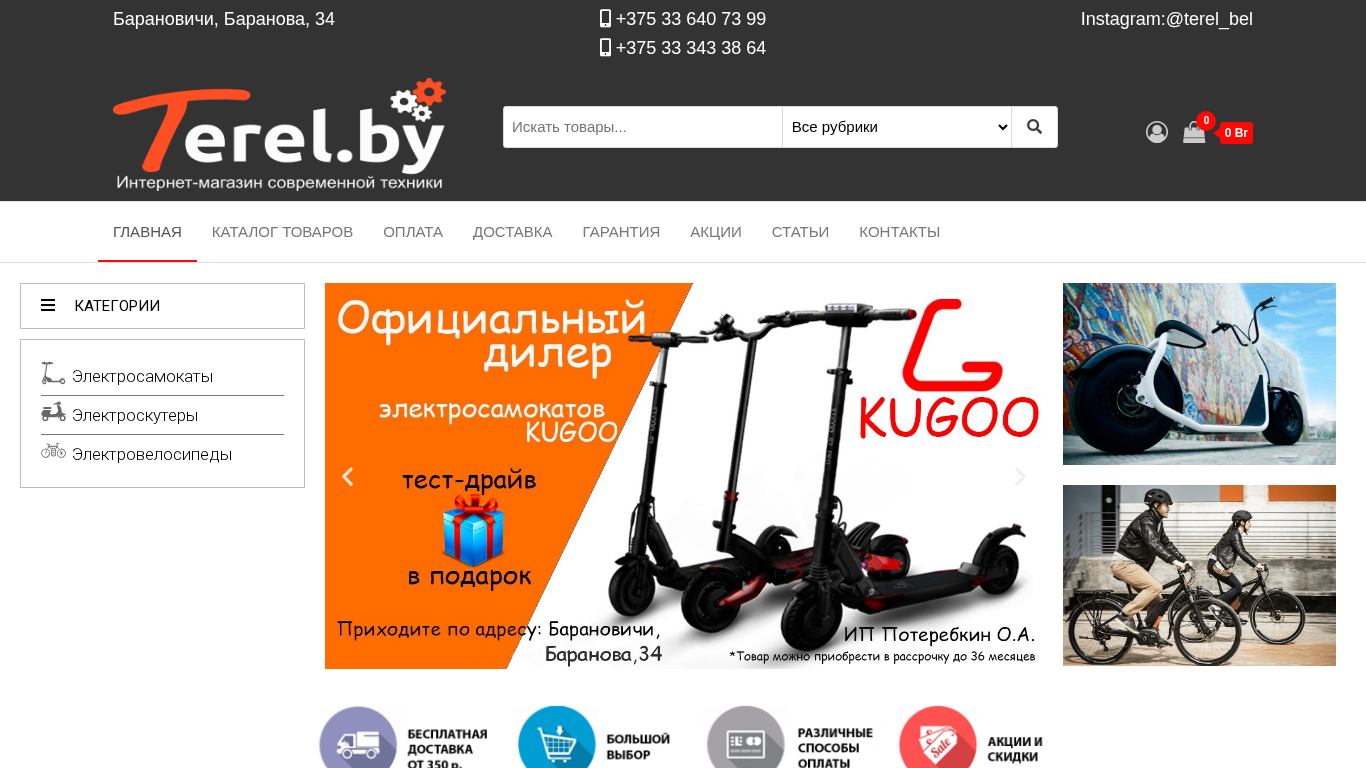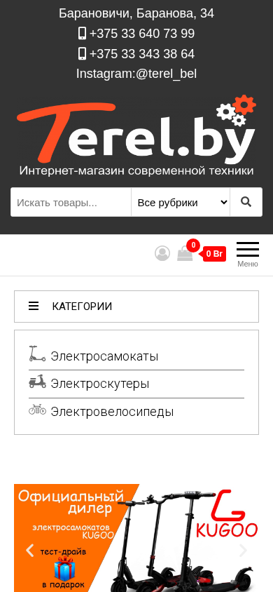 | SEO-описание | Большой выбор электросамокатов, гироскутеров, электровелосипедов с 🚚 доставкой по всей Беларуси. ✅Большой магазин в Бресте и Барановичах! 🎁Скидки до 15% ✅Рассрочка! |