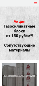 | AI-анализ | --- The web project "Blokizabudova.by" is a building materials supplier focusing on the sale and delivery of gas silicate blocks. The homepage presents the main product category, "Газосиликатные блоки", with additional offerings for concrete, sand, metal rods, lotto blocks, ceramic bricks, and building mixtures. The site offers advantages such as operational efficiency, quality certifications, a wide assortment, and consultations from experienced specialists. Customers can place orders for pick-up and delivery, with flexible pricing starting at 148 rub/m³ for gas silicate blocks from Smorgoń. Other available products include beams, ceramic bricks, and dry building mixtures. The site also features a contact section for inquiries and information on making a purchase. |