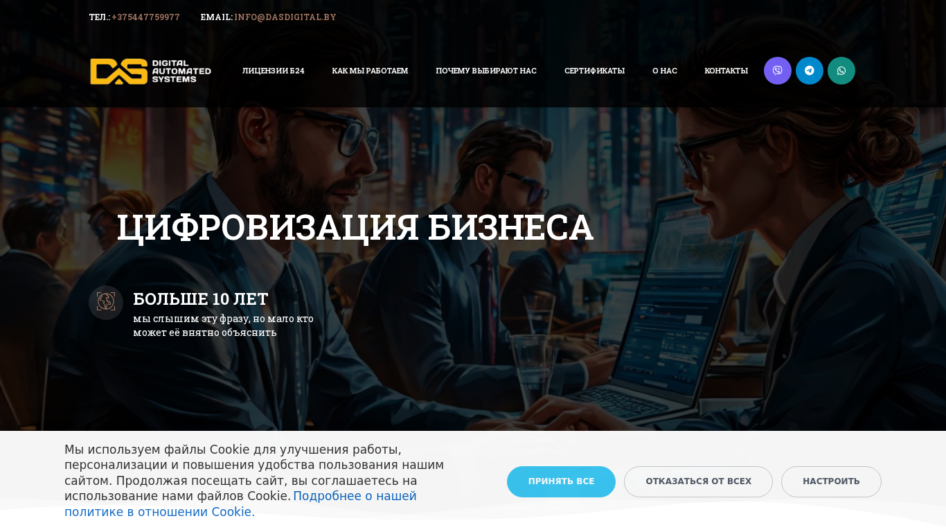 | SEO-описание | DAS Digital - мы занимаемся цифровизацией бизнеса в РБ, РФ и worldwide с 2012 года. Устали от фраз "А вы нам такого не говорили"? Не понимаете - ваши сотрудники эффектны или эффективны? Мы поможем. |