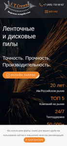 | AI-анализ | This website is an e-commerce platform for belt and disc saws, metal belting, and related machinery. The title of the website is "Сайт ООО «Эс Ти Кроун»" (Company "ES TI CROWN") and it offers production and sales of high-performance belt and disc saws, metal belting for machines, spare parts, and consumables for machines. The company provides equipment sales and guarantees and post-warranty service. The website includes a catalog of products, a section on the company, media, contacts, and a section for making online inquiries. The company has been operating in the Russian market for 20 years and is one of the top 5 companies in the sector. The website offers 24/7 customer support and has a large inventory of over 50,000 stock units. The website's |