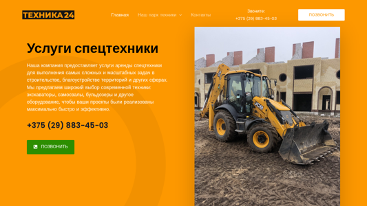 | AI-анализ | --- The portal Tehnika24.by offers services for renting specialized equipment in Grodno, including excavators, dump trucks, bulldozers, and other machinery. The reliable equipment is suitable for completing various projects efficiently. The company provides a wide range of modern technology, including excavators, dump trucks, bulldozers, and additional equipment. Contact number: +375 (29) 883-45-03. Services include excavator-loader JCB 3CX (rental price per hour: from 100 rubles), excavator-loader Hidromek 102b (rental price per hour: from 100 rubles), dump trucks 20 tons and 30 tons (rental price per hour: from 80 rubles), Liebherr crawler excavator ( |