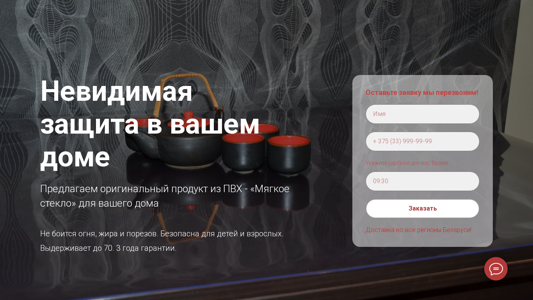 | AI-анализ | --- The web project "Abrus.by" offers an original PVC product called "Soft Glass" for home protection. This silicone scatererty product is fire, oil and cut resistant, safe for children and adults, and lasts up to 70%. It comes with a 3-year warranty. Contact information is provided for ordering, delivery, and inquiries. The product can be used for various surfaces including tables, countertops, and windowsills. Delivery is available throughout Belarus. |