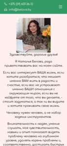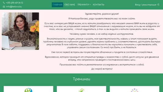 This website is dedicated to Natalia Belova, a personal development coach offering group workshops, personal consultations, and training sessions. The title "Белова" and alternate spelling "belova" appear frequently in the website's metadata, along with the phrase "Изобилия," which translates to "abundance" in English. The description section mentions the importance of understanding oneself and living one's life authentically, emphasizing the need for human connection and personal growth. The website offers group workshops lasting three months or eleven weeks, as well as individual consultations to help individuals align their thoughts, feelings, and actions. The overall goal is to promote self-awareness and personal fulfillment.