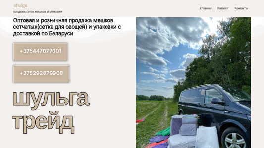 | SEO-описание | Shulga Оптовая и розничная продажа мешков сетчатых(сетка для овощей) и упаковки с доставкой по Беларуси. Купить сетку мешок для овощей, мешок полипропиленовый, мешок сетчатый на рулоне, нитка зашивочная |