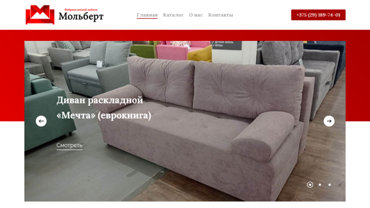 | AI-анализ | The portal is a furniture e-commerce website specializing in sofas and armchairs. The title of the homepage is 'Заказать диван' (Order a Sofa). The description mentions the words 'каталог' (catalog) and 'мечта' (dream) multiple times, suggesting that the website offers a wide range of sofas and armchairs for customers to choose from. The top_words indicate that the website sells both fixed and collapsible sofas, which are referred to as 'диван' and 'диван раскладной' respectively, as well as various models named 'Мечта', 'Премьер', and 'Мечта-3'. The prices of the products are given in Belarusian rubles and euros. The website also provides contact information, including a phone number and an address in the city of Жоди |