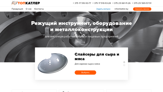 | AI-анализ | The web project "Katler Plus" offers the sale of cutting tools, industrial knives, and related equipment in Minsk, Belarus, at competitive prices. The company is an official dealer for various knife brands such as Alpina, Kilia, Laska, Rex, Duker, Maisner, Olotinox, PMK, Kremer+Grebe, Seydelmann, and others. The product range includes cutting tools like planing knives, ploughshare knives, circular knives, special knives, ring knives, and tools for mechanical peeling. Additionally, the offering includes cutting equipment like conveyor belts, chains, and cutting systems. The contact details for the business are provided, including several phone numbers. |