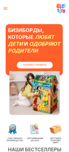 | AI-анализ | The portal Bizitoys.by offers children's developing toys in Belarus, with 40 games in one. The title includes the words "Бизиборды и бизидома," which translate to "balance bikes and playgrounds." The description emphasizes the engaging nature of the toys and invites users to place an order, providing details on the order process and payment methods. The top words suggest various toy formats and age ranges, as well as the option for a universal gift. Users can take a quiz to help select the most suitable toy for their child based on age, gender, and preferred toy format. The portal offers a quick order form, customer support contacts, and information on shipping and delivery. The domain bizitoys.by is associated with the brand. |