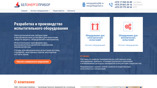 | AI-анализ | --- The portal Belenergopribor is a Belarusian website dedicated to the development and production of testing equipment. The website offers a range of electrical testing equipment including LЭИС-50, LЭИS-100, and LЭИS-150, mobile high-voltage installations, and testing transformers. Additionally, the site lists various mechanical testing equipment such as SМI-500, SМI-1000, SМI-400R, SМI-600R, SМI-400K, and SМI-600K. The site also mentions clients' contacts for inquiries and orders, as well as phone numbers and email addresses. The main sections of the site are 'Home' and 'Catalog of Equipment,' with sub-categories for electrical and mechanical testing equipment |