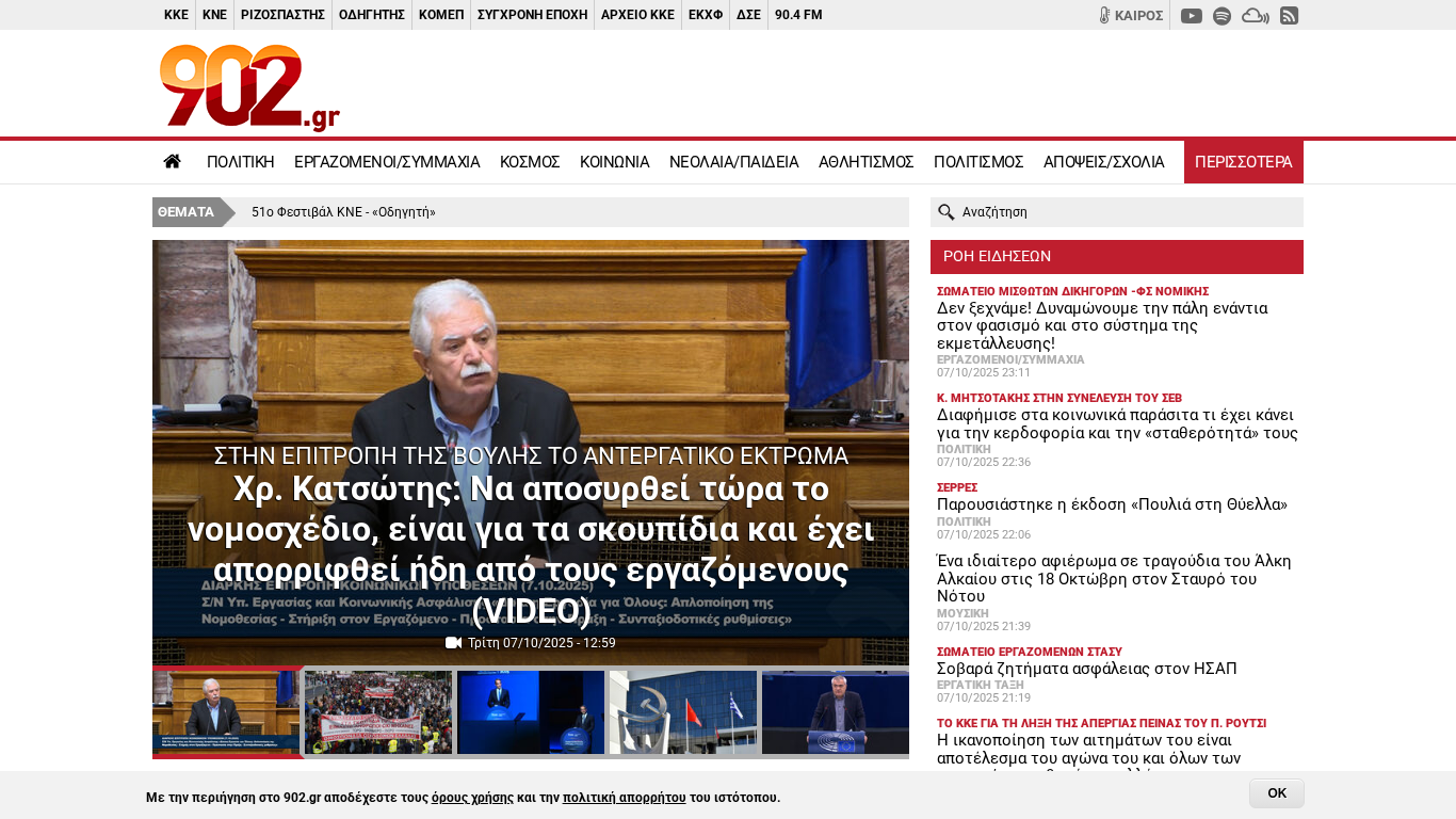 | SEO-описание | Ειδήσεις, νέα και επικαιρότητα. Για να ξέρεις την αλήθεια κάθε στιγμή. Το διαδικτυακό ενημερωτικό portal του ΚΚΕ 902.gr με καθημερινή αρθρογραφία από την επικαιρότητα σε Ελλάδα και κόσμο. |
