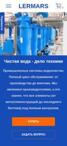 | AI-анализ | The website Lermars is dedicated to providing industrial water purification systems and home water filtration solutions. The company is a manufacturer, giving it full control over all elements of production and installation. The homepage highlights the importance of clean water for daily life and offers products for various applications, such as domestic use, offices, cafes, and restaurants. Available items include reverse osmosis membranes, carbon blocks, and filtration systems. The website also features a blog and contact information. |