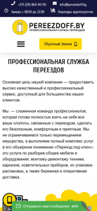 | AI-анализ | --- This online resource is named Pereezdoff.by and functions as a professional relocation service. The website offers services for residential, cottage, and office moves. Experienced specialists and a private fleet of vehicles ensure a professional relocation experience. Visitors can contact the service at +375-33-677-39-32 for more information. The website includes sections for services related to office, apartment, and cottage moves, as well as furniture and household appliance transportation. Upacking and takelage work, online ordering, and pricing information are also available. The company's portfolio, reviews, and contact details are also featured on the site. The company aims to provide a high-quality and professional service accessible to most clients, handling all the hassles of moving and ensuring safety, comfort, and pleasure. Services include disassembling and packing furniture, packing household items, documents, and |