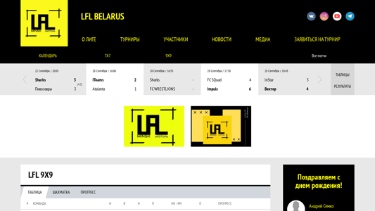 | SEO-описание | Сайт LFL BELARUS. Результаты игр, календарь матчей, турнирные таблицы, статистика игроков, новости, все турниры и чемпионаты - следите за обновлением на сайте LFL BELARUS, принимайте участие. Создано с помощью Join.Football - конструктор спортивных сайтов с крутым футбольным движком. Лучшее решение, чтобы создать футбольный сайт турнира, лиги или федерации |