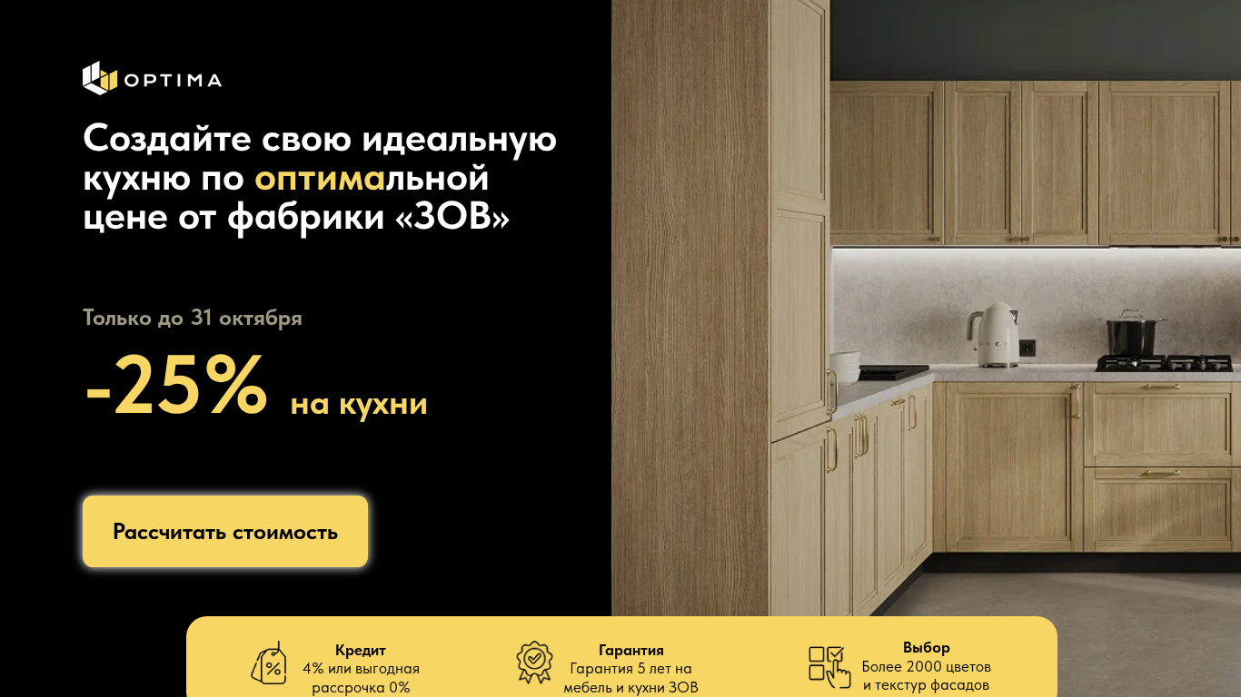 | Название / Заголовок | Модульные кухни ОПТИМА от производителя с выгодой до 25%. |